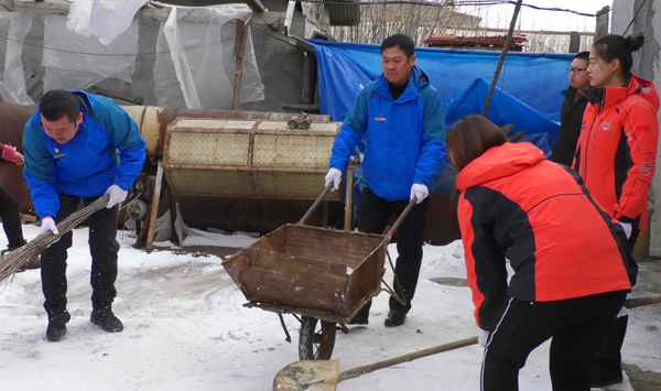 據(jù)了解,鄭春平是一名擁有50多年黨齡的老黨員,老伴因腦出血癱瘓?jiān)诖?5年,無固定收入,生活十分貧困。得知這一情況,黨小組決定開展幫扶活動(dòng)。隊(duì)伍到達(dá)前,老人便早早地在家門口等候,面對(duì)攜帶御寒衣物和米面等生活物資的志愿隊(duì)員們,老人哽咽著連連說道“感謝黨啊”!通過詢問,大家進(jìn)一步了解了老人的生活情況及其老伴的身體狀況,并鼓勵(lì)他一定要樹立信心,在組織的關(guān)懷下,共同渡過難關(guān)。老人對(duì)黨組織的關(guān)懷表示感謝,也表示了一定會(huì)堅(jiān)定信念戰(zhàn)勝困難,言談舉止展現(xiàn)了一名老黨員的風(fēng)采,樂觀的生活態(tài)度感染了在場(chǎng)的每個(gè)人。隨后,志愿隊(duì)員們幫助老人清理了院內(nèi)的積雪和雜物,瑟瑟的寒風(fēng)抵擋不住大家的熱情。通過實(shí)際行動(dòng),不僅為老黨員送上真情和關(guān)愛,更展現(xiàn)了企業(yè)的人文關(guān)懷,進(jìn)一步增強(qiáng)了黨組織的凝聚力。
