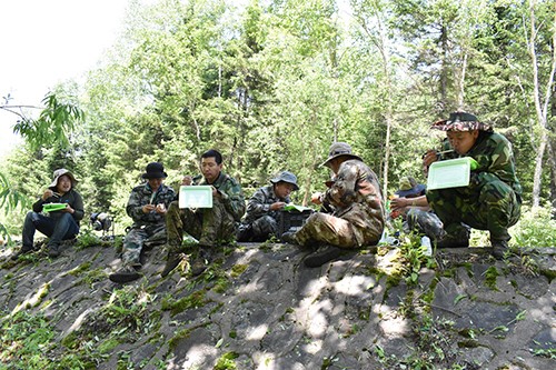 他們無懼30多度的高溫,爭先恐后、你追我趕,一顆顆黃豆大的汗珠滑過了他們的臉頰和嘴角。穿著膠靴作業(yè),悶熱捂腳,穿著布鞋干活,又會被水浸泡。大多數(shù)的隊員們都曾被割草機(jī)卷起的石子和木棍打得傷痕累累。為了加快作業(yè)進(jìn)度和節(jié)省車輛燃油,大家就選擇了在作業(yè)現(xiàn)場進(jìn)食午餐,但從未缺席的綠頭蒼蠅也會準(zhǔn)時光臨,成群結(jié)隊,揮之不去,弄得大家哭笑不得。