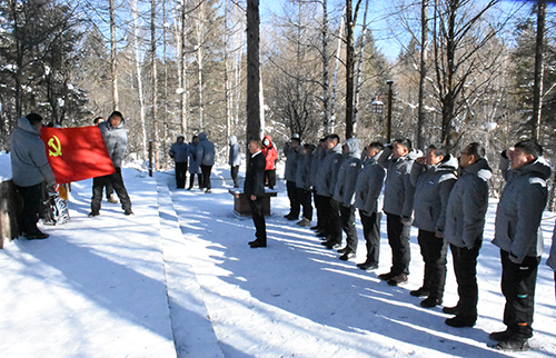接下來,支部書記帶領(lǐng)黨員們面向黨旗,舉起右拳,對黨忠誠、永不叛黨的錚錚誓言在黑河密營中久久回蕩。最后,本次活動在《沒有共產(chǎn)黨,就沒有新中國》的嘹亮歌聲中結(jié)束。